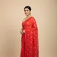 The highlight of this saree lies in its intricate full-body embroidery, inspired by delicate floral Siuli (night jasmine) motifs that symbolize purity and serenity. Each stitch reflects the skill and passion of artisans, turning this saree into a canvas of timeless craftsmanship.