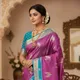 Crafted from luxurious silk, the Paithani stands out with its rich zari borders, intricate pallu designs, and vivid color contrasts that shimmer beautifully in every light. The hallmark of this weave is its peacock, lotus, or floral motifs, intricately woven in gold and silver threads—each piece reflecting the grandeur of royal traditions.